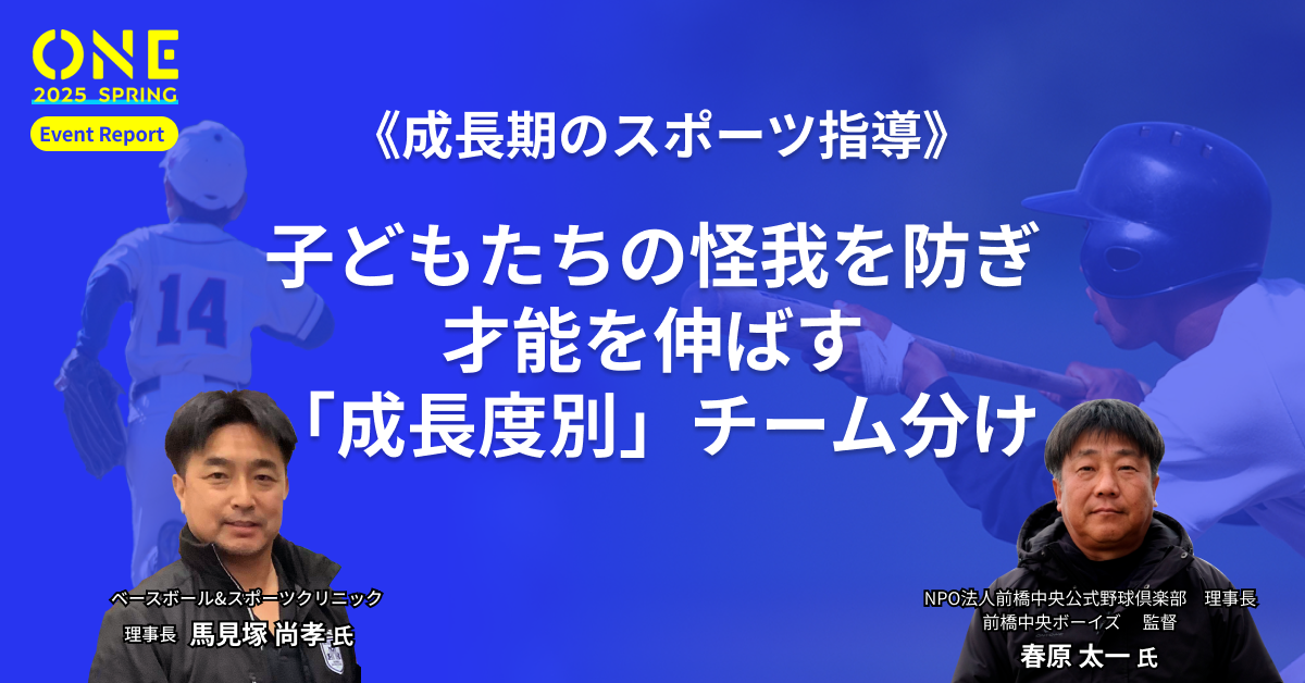 セッションは、春原氏が監督を務める中学硬式野球チーム「前橋中央ボーイズ」のユニークなチーム運営、年齢・学年別ではなく成長度別のチーム分けの紹介から開始された。