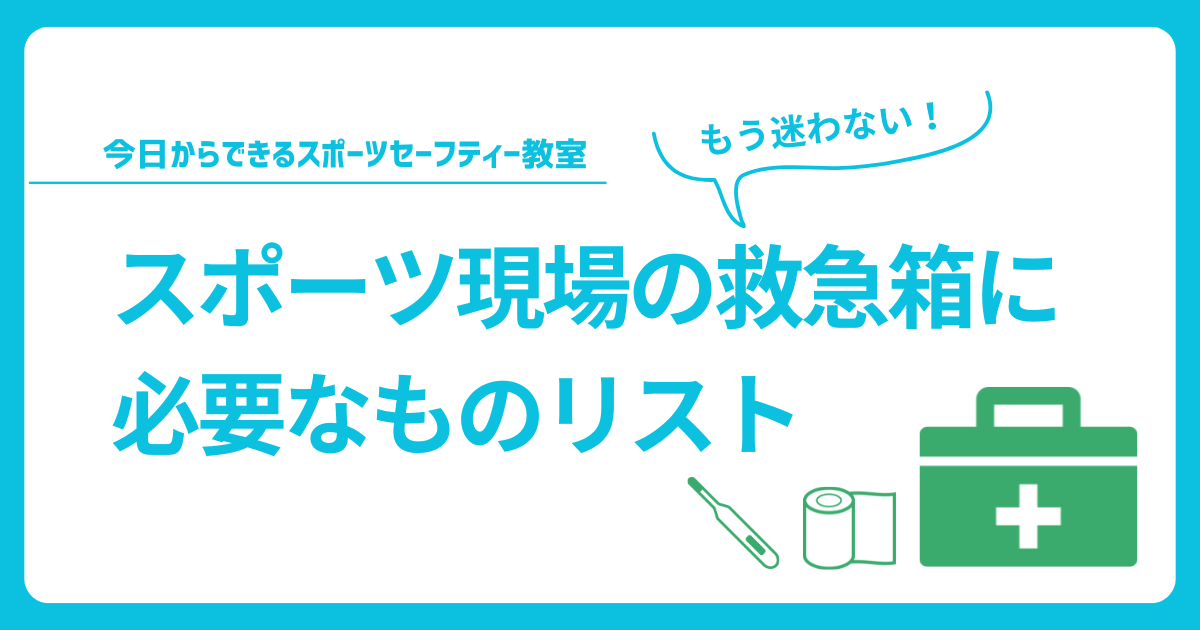 また、「何を用意するか」で救急箱の中身を揃えると、具体的な使い方が分からないどころか、いざというときに使えず、必要なものを取り出すときに邪魔になってしまうことさえあります。今回は、専門家の帯同がない地域のクラブチームを想定して進めていきましょう。