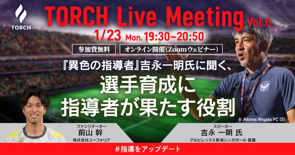 W杯や選手権大会の余韻冷めやらぬ1月の一夜、TORCHスタート当初からのコンセプト「指導をアップデート」のヒントを見つけにぜひお越しください。